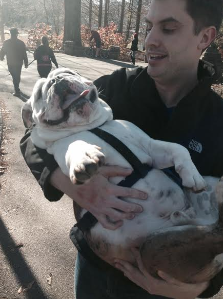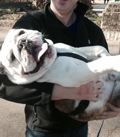 There is no motivating a 60 pound bulldog who has firmly decided he’s not moving.